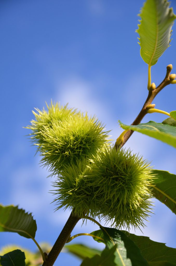 Förutom att trädet levererar ätbara kastanjer är bladverket något alldeles extra. Trots sin mörkt gröna nyans formligen skiner hela trädet. Bladen är dessutom snyggt tandade vilket tillsammans med frukterna ger ett synnerligt exotiskt uttryck. Frukten är omgiven av ett mjukt taggigt och ljusgrönt hölje, kallat svepeskål, som inuti gömmer två nötter ibland till och med tre. De är vackert blanka och bruna, kastanjebruna förstås.